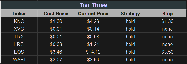 Tier 2 coins are those coins which have performed extremely well, we have a large amount of assets with, and we believe will continue to operate with high marks. What separates these coins from our Tier 1 status is a flaw or they haven’t yet proven their defining feature, though we believe they will.