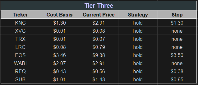 Tier 2 coins are those coins which have performed extremely well, we have a large amount of assets with, and we believe will continue to operate with high marks. What separates these coins from our Tier 1 status is a flaw or they haven’t yet proven their defining feature, though we believe they will.
