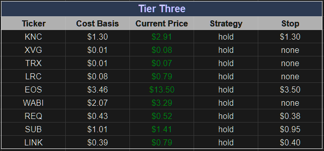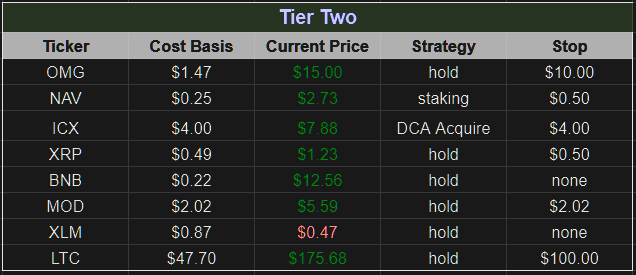 Tier 2 coins are those coins which have performed extremely well, we have a large amount of assets with, and we believe will continue to operate with high marks. What separates these coins from our Tier 1 status is a flaw or they haven’t yet proven their defining feature, though we believe they will.
