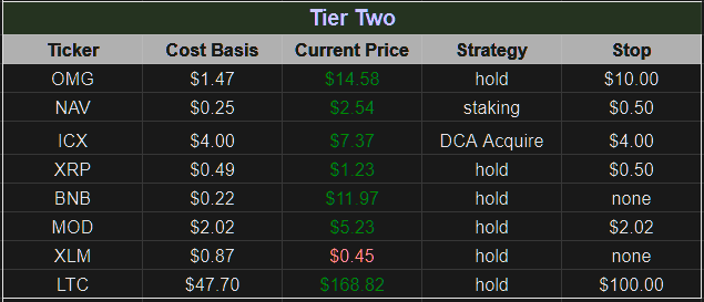 Tier 2 coins are those coins which have performed extremely well, we have a large amount of assets with, and we believe will continue to operate with high marks. What separates these coins from our Tier 1 status is a flaw or they haven’t yet proven their defining feature, though we believe they will.