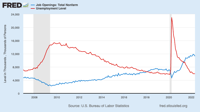 Assuming any economic slowdown or recession is short-lived, it’s arguably a sensible move especially with the recruiting environment remaining challenging. According to the BLS data released Wednesday, there were 11.25 million job openings in May. That compares to the 5.95 million unemployed during the same period. With nearly two job openings per unemployed person, this is a very tight labor market.