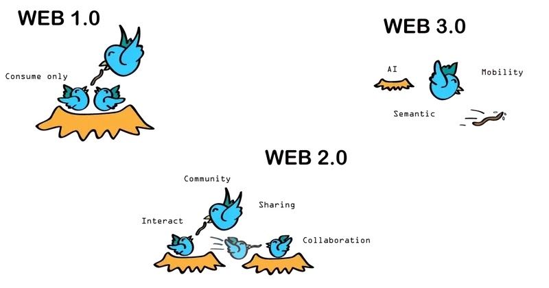Web 1.0 – Static pages, low content-creation, personalized pages. Not very user-friendly, so it was mostly a read-only experience, as Berners-Lee likes to describe it.